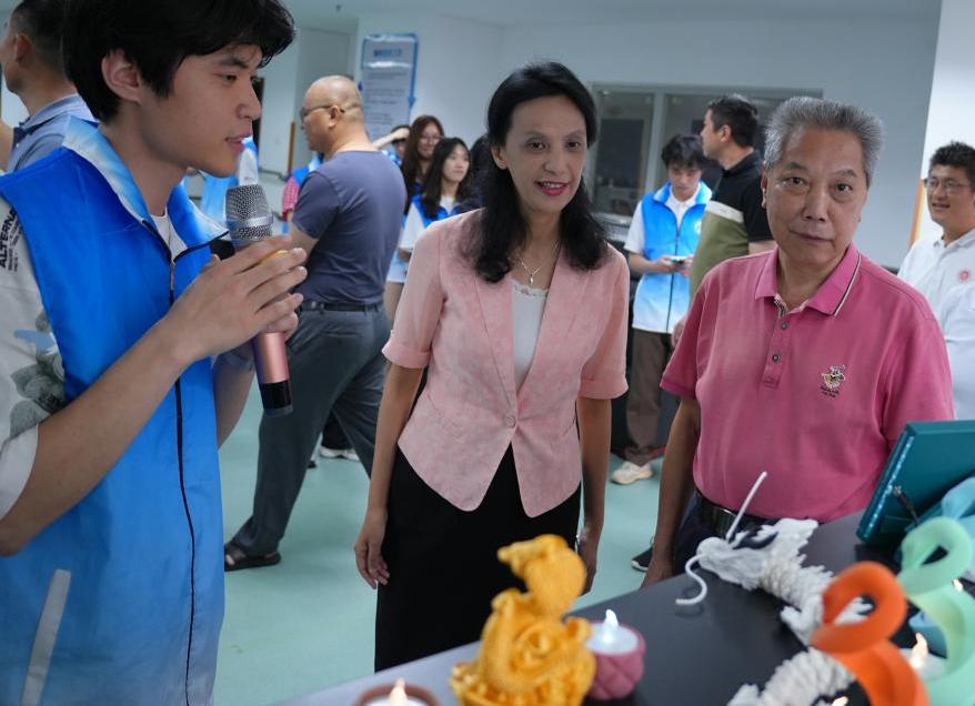 公司老员工科技创新团队现场展示了3D打印技术,并指导与会嘉宾深入体验了虚拟现实技术的创新应用。