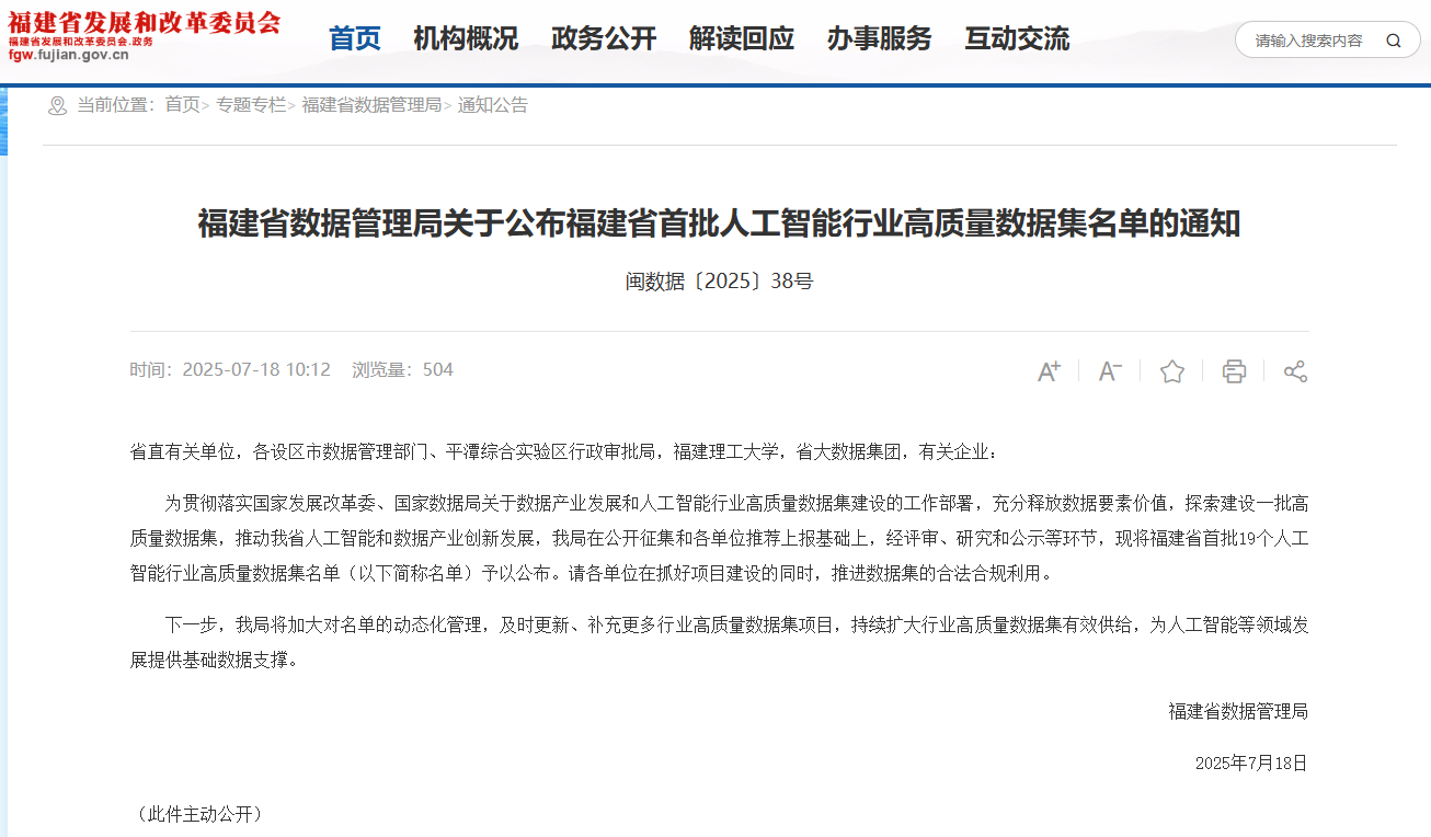 近日,福建省数据管理局正式公布首批人工智能高质量数据集名单,由公司牵头、厦门纵横集团科技股份有限公司联合参与建设的 “智慧司法 AI 大模型数据集” 成功跻身其中。这一突破性成果不仅标志着英国上市公司365在人工智能基础数据领域实现了关键跨越,更凸显了学校在该领域的科研实力与创新潜力。值得关注的是,在此次入选该项目的单位中,仅有福建理工大学与公司两所本科院校,充分体现了公司在相关领域的专业积累与行业认可度。