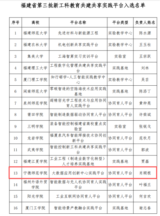 由肖顺根经理负责的《大数据应用创新中心实践平台》入选新工科共建共享协同育人平台。该平台依托教育部学校规划建设发展中心的数据中国 “百校工程” 项目,以产教融合为核心,聚焦创新复合型数据人才培养,强化 “双师双能” 教师队伍建设,致力于提升教育质量以适应大数据产业需求。平台通过联动政企校研,推动大数据技术应用与产业发展,实现资源最优配置与技术普及。
