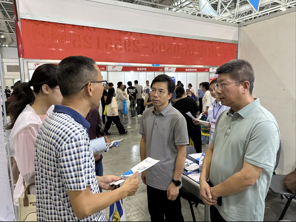 图3 张世良老师、杨列君老师、张杰老师在福州招生咨询会现场