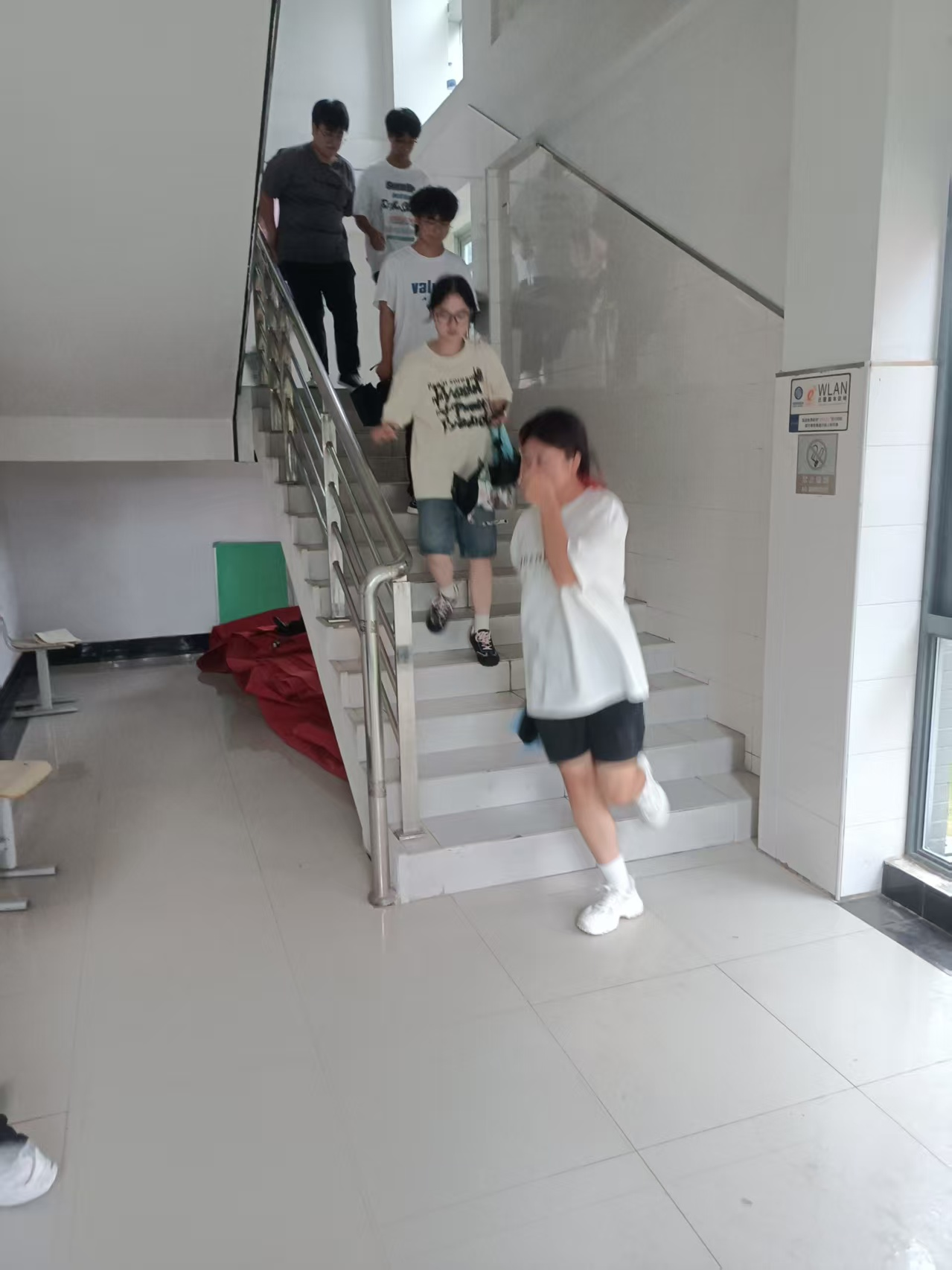 3)分布在实验楼各楼层位置上的老师要引导员工有序疏散,防止拥挤踩踏;