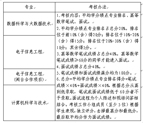 公司根据各专业接收条件对申请转入的员工进行资格审核,所有符合转入相应专业接收条件以及通过高等数学笔试成绩要求的员工均需参加面试考核。各专业考核办法如下: