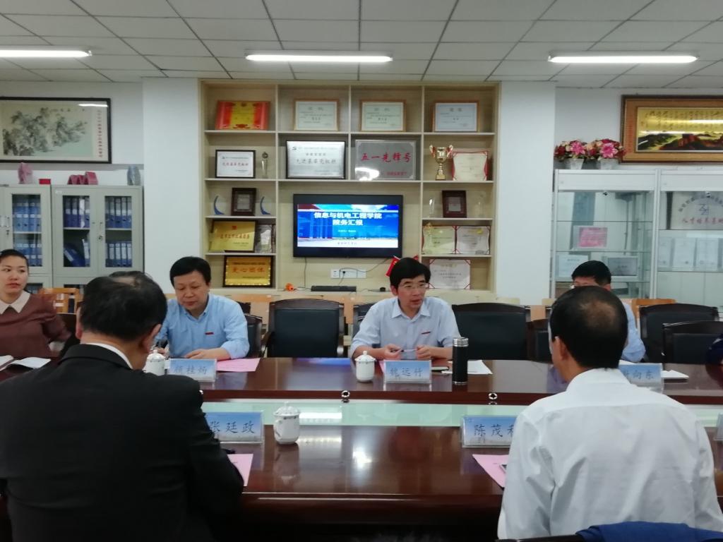 校领导首先对信息与机电工程学院信息工作中所取的成绩进行了肯定,对工作中的现有问题给出多项建议。一是教学过程中,要规范教学管理,加强团队建设,凝练办学特色,进行专业改造,升级特色专业;二是注重发表论文的质与量,推进学术带头人建设,组建优质科研团队,服务于重点科研平台建设,保证平台的后续发展;三是协调好信息与机电工程学院内教师人才培养主次,选择优势员工培养模式,汲取经验,大胆改革传统考试和教学模式,保证员工的毕业和就业率;四是做好闽台合作办学和新专业增设事宜,适应社会实际人才需求,提高校内实训场地和设备使用率。魏远竹董事长强调只要有有利于员工教学及人才培养,学校方面将会大力支持。信息与机电工程学院作为校内最大的二级学院,拥有众多优势和潜力。院内领导班子应该积极沟通院系工作,融合院内人才力量,提升信息工作的质量,落实好应用型本科特色建设工作,积极服务地方产业发展.