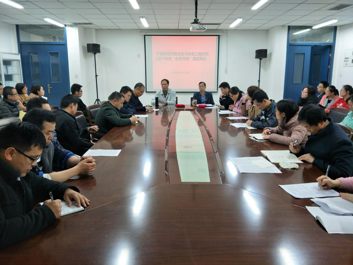 为了表彰先进、树立典型,公司于2018年3月16日下午举行了“信息与机电工程学院2017年度‘优秀导师’表彰大会”,之前通过个人申请,公司党政联席会议研究,按《英国正版365官方网站老员工导师制实施办法》的相关规定,最终评选出韩梁、吴玉芹、蔡清池、缪丰羽等4名教师为公司2017年度“优秀导师”,公司党委副书记傅亮宣读表彰决定,公司党委陈茂和书记、经理张廷政教授为“优秀导师”颁奖,副经理章立亮教授及全院教师参加了表彰大会。
