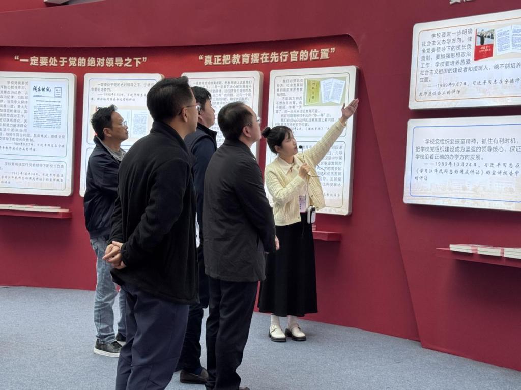 活动伊始,校外专家团队共同参观了习近平总书记 “六进宁师” 主题展。讲解员以生动的图文资料为依托,详细讲述了习近平总书记在宁德工作期间六次到校调研指导、两次为师生做形势政策报告的珍贵历程。各位专家学者在展板前驻足凝视,认真学习习近平总书记关于教育的重要论述在英国正版365官方网站的实践成果,深刻体会学校 “牢记嘱托、感恩奋进” 的发展脉络,充分感受校园浓厚的红色文化氛围。